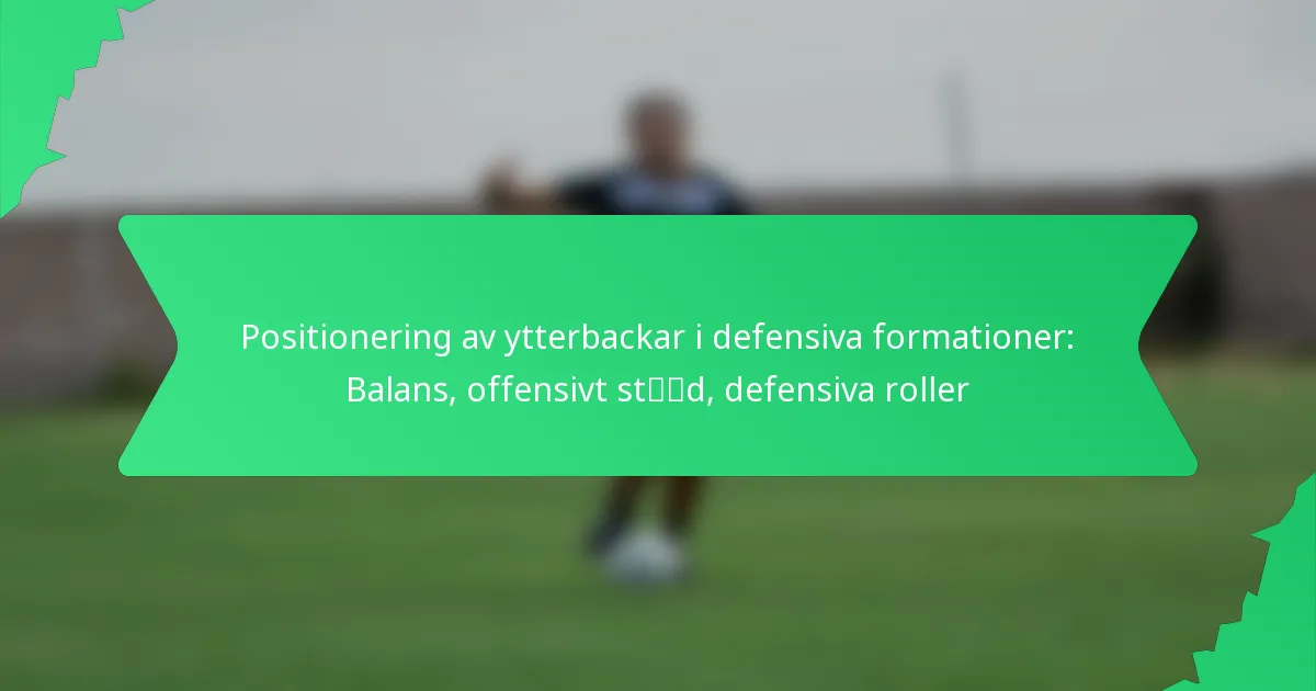 Wing back-positionering är avgörande för att definiera ett lags defensiva struktur och offensiva stöd. Roller för wing backs skiljer sig avsevärt mellan formationer som 3-5-2, 5-3-2 och 4-4-2, vilket påverkar både defensiv stabilitet och offensiva kapabiliteter.